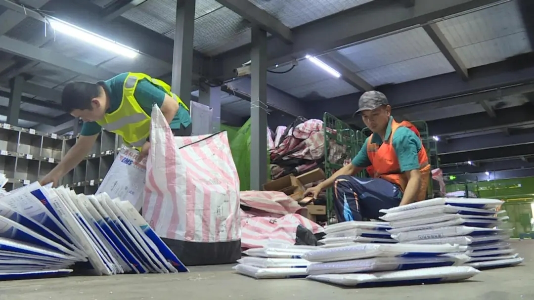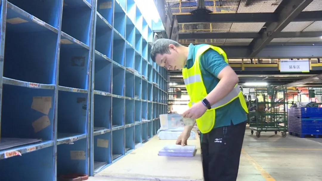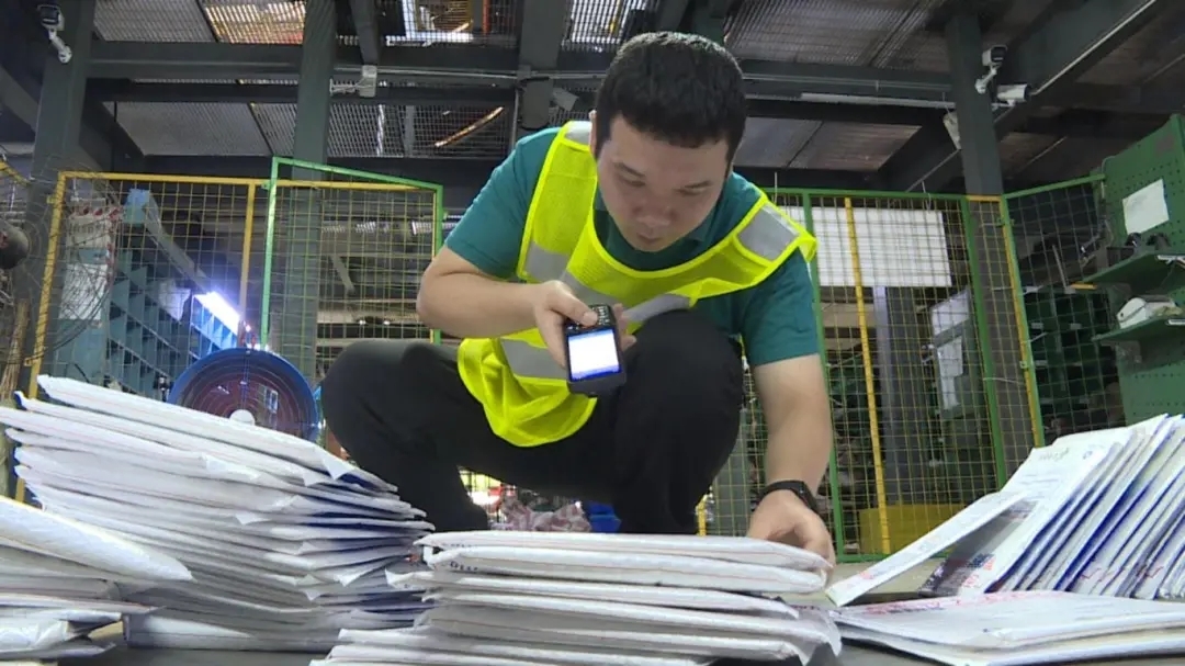 在中国邮政柳州邮件处理中心的货舱里,覃健正与同事一起检查自动分拣设备的运行情况,每天有90万件物品和信件要通过这里分送到各地。各类物品来到这里后,需要经过接收、分拣、扫描封发等工序,再转交到各地的网点。其中,有约1万5千封纸质邮件,要用人工分拣。